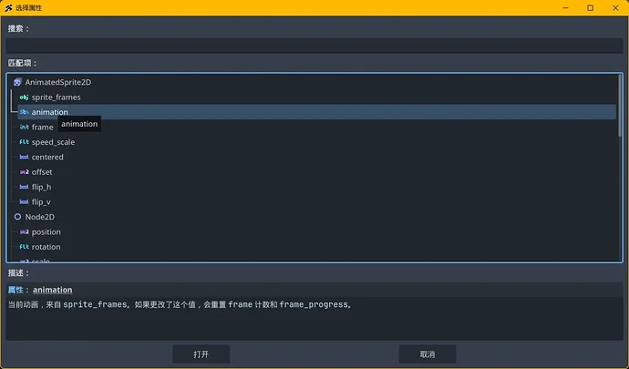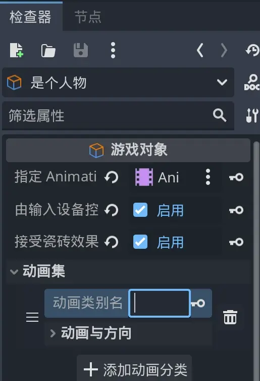 以前作成した AnimatedSprite2D を選択します。