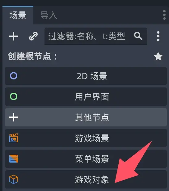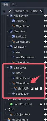 以前の game_scene ファイルを開き、多数の ObjectRoot から図のような ObjectRoot を見つけ、【右クリック】【サブシーンとしてインスタンス化】【player.tscn】を選択します。