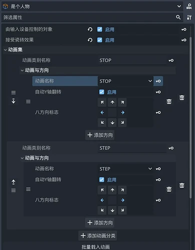 アニメーション追加ボタンを使用して、必要な「歩く【01-STEP】」と「止まる【00-STOP】」の 2 つのアニメーションを新規作成します。