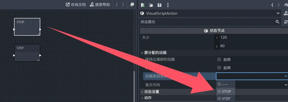 2 つの状態をそれぞれ対応するアニメーションに紐付けます。