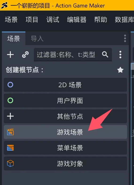 既存のシーンウィンドウで【ゲームオブジェクト】を見つけ、クリックします。